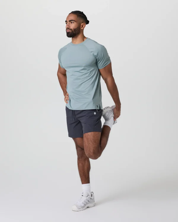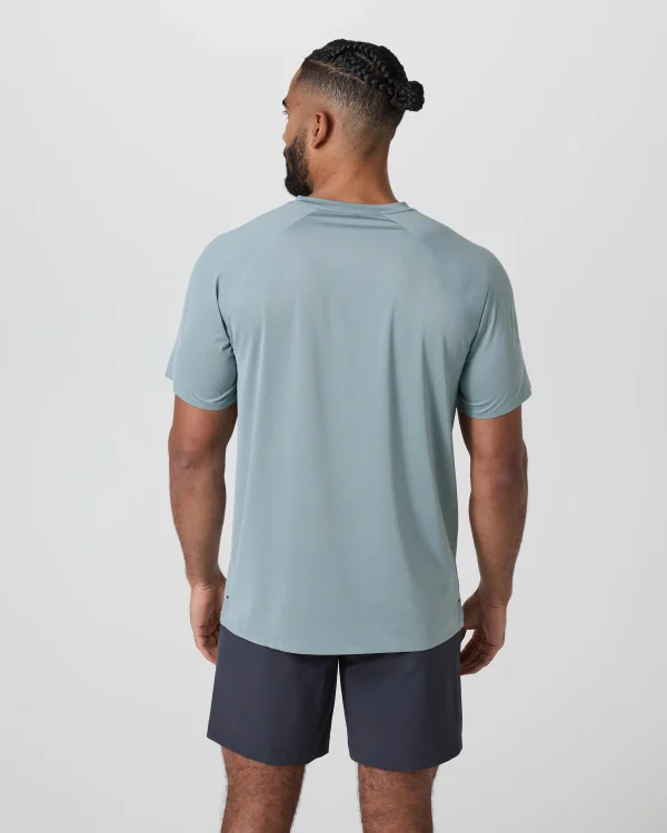 A new addition to your gym routine. This is a sweat-wicking tee with perforations for added breathability and easy raglan sleeves. Bonded seams ramp up the comfort.